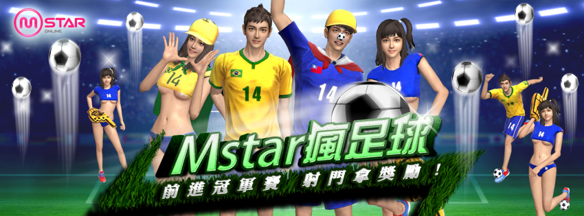 Mstar》瘋足球活動,透過登入、跳舞等方式達成關卡條件後,則獲得各關卡分數,依照累積的得分分數,可免費換取巴西隊足球制服、真的是足球鞋、各國國家披風、黃色應援大手套等獎勵,還有獨家設計的台灣球隊球衣喔!半夜等世界盃足球賽轉播前,先上《