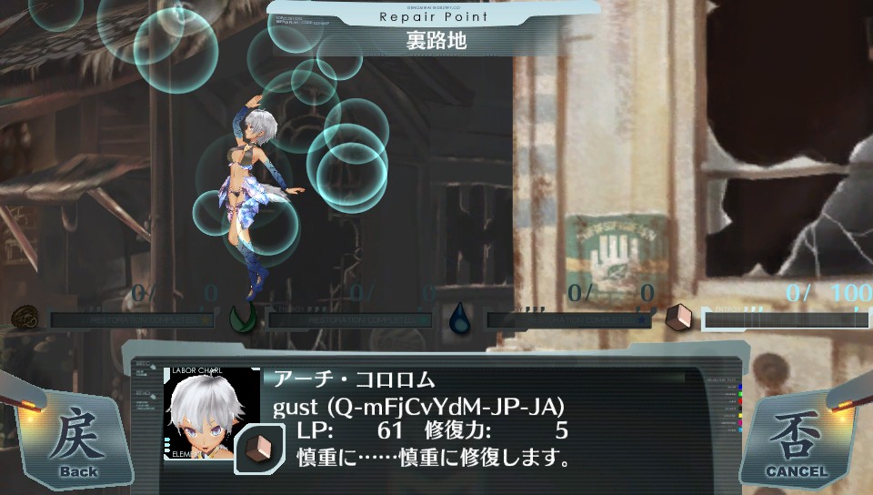 選擇廢墟地圖後、將會顯示修復所需的夏爾的屬性。選擇對應該屬性的夏爾、將可以修復記憶。