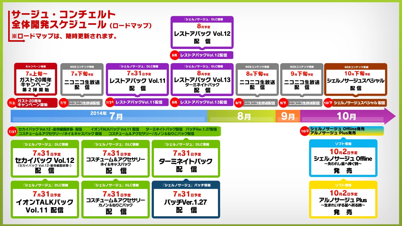 關於以超越遙遠的七個次元之處,真實存在著的世界。這樣的概念作為依據,以各種不同的遊戲類型,於各種硬體上所持續進行製作的波濤協奏曲的作品群,在這裡介紹其開發的日程表。