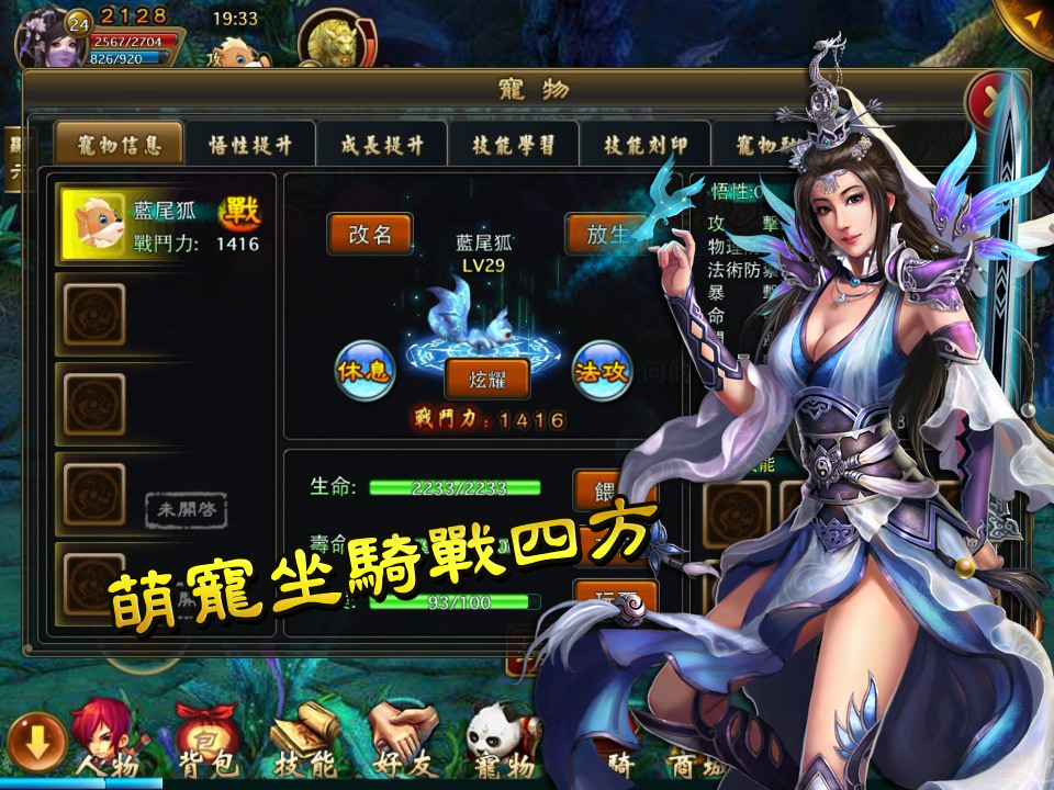 一劍滅天》裡,寵物不僅會說話賣萌,還會化身為修仙者們最忠誠的朋友,協助戰鬥,征服四方唷!打開寵物介面,玩家可查看所馴養寵物的狀態資訊,並任選其一共同戰鬥,而在閒暇的時間裡,玩家還能透過改名、餵食、延壽和玩耍等方式與寵物進行互動,培養出更強力的戰寵,讓戰鬥更加事半功倍!