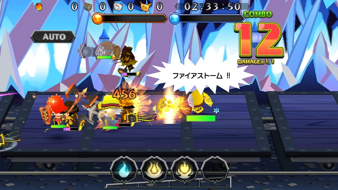 能夠使用 AUTO 的只有已經過關的任務,開始後雖然必須手動設定,但只要在任務開始後觸碰 AUTO 鈕的話,之後 AI 就會自動戰鬥到結束為止。當然只要再按一次 AUTO 鈕的話就可以喚回手動操作。
