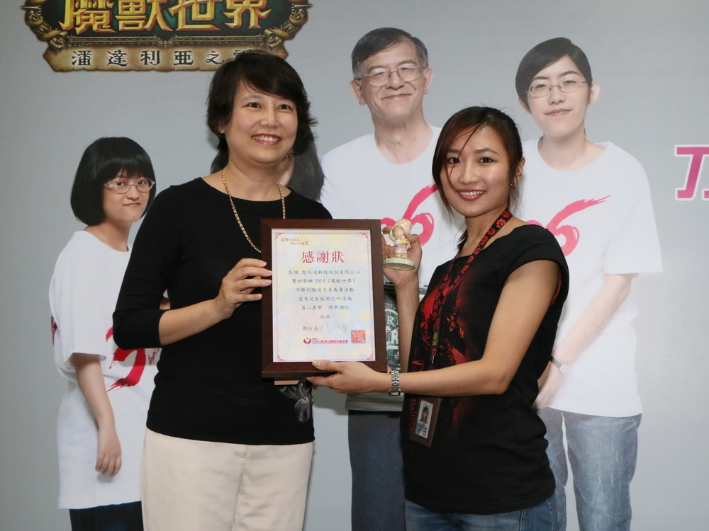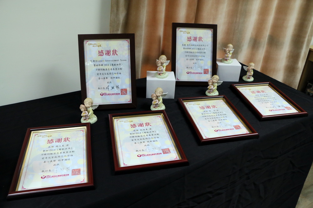 天使心家族社會福利基金會頒發感謝狀給 Blizzard