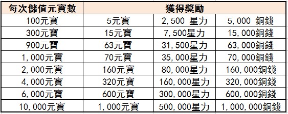 【活動內容】:每單次儲值滿足相應額度即可領取獎勵