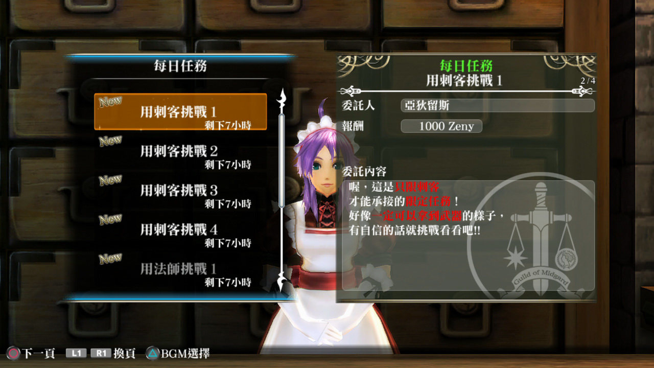※ 如欲下載每日任務的遊戲資料,請從任務櫃台選單的最上層進行「□更新營運資料」。
