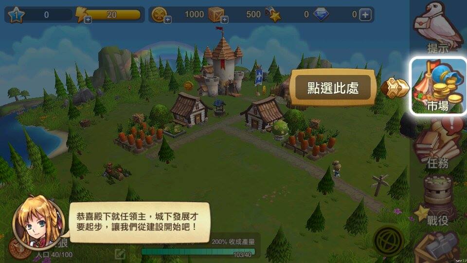 遊戲前期只要跟隨著任務的指引進行戰役,基本上不太有撞牆的情形發生。選擇軍營時,有絕對傷害戰法的部隊可以優先考慮,比如十字弩兵隊,練起來後會比較不怕戰役中有高防禦力的敵部隊單位,初期非常有優勢。努力撐到 20 級起會接到的每日演習戰役,經驗值、資源和材料的獎勵會比一般戰役高上不少,推薦一定要解完。