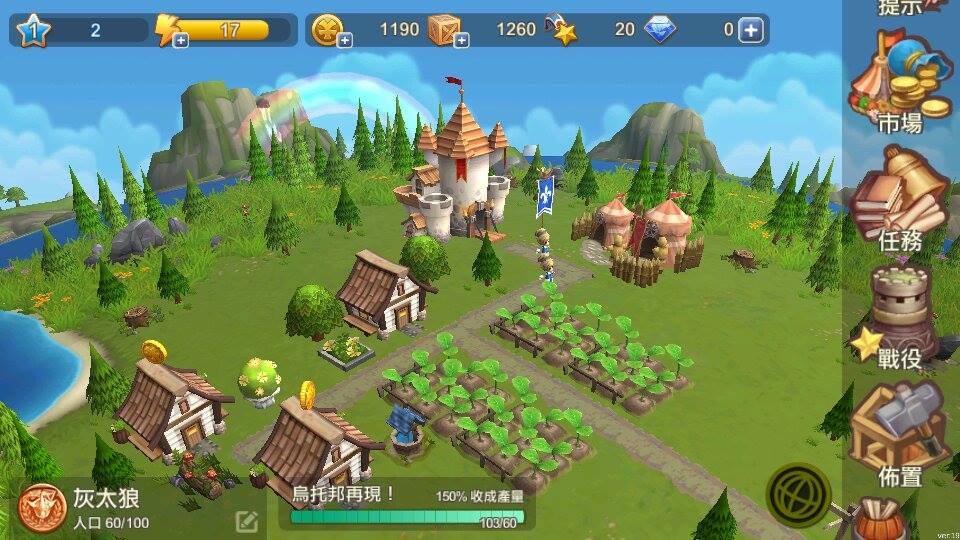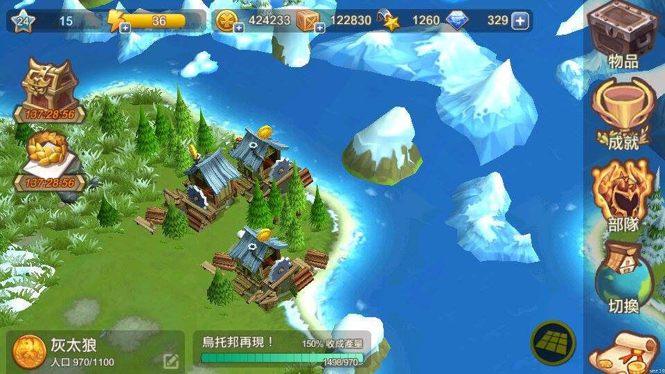 進入遊戲後,首先映入眼簾就是那再熟悉不過的「球形視角」領地畫面,但介面配置和風格明顯不同了,可以看出是為了配合手持裝置的特性而做的改變。