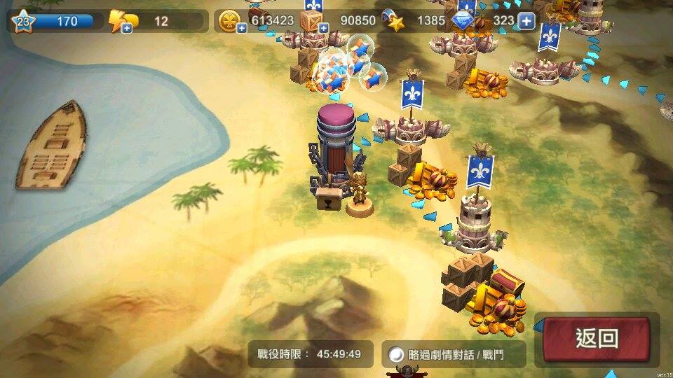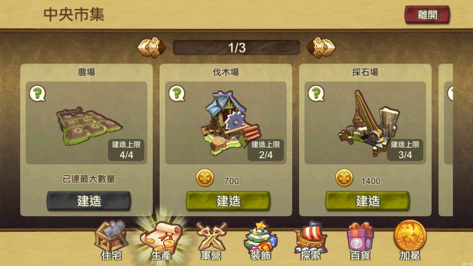 首先,在經驗值的取得方式部份是轉換到手機版後第一個要適應的不同點。網頁版無論經營或是戰役都可以獲得經驗值,手機版則完全必須靠著進行戰役來升級。另外,每一種生產建物也都有限制的建造數量,這設定完全粉碎筆者「以農立國」的美夢!值得安慰的是,建造房屋、軍營都不用再花費行動值了,而戰役經驗值計算規則也改為出陣部隊數越多經驗值越高,領地等級的提升倒不會太過刁難。