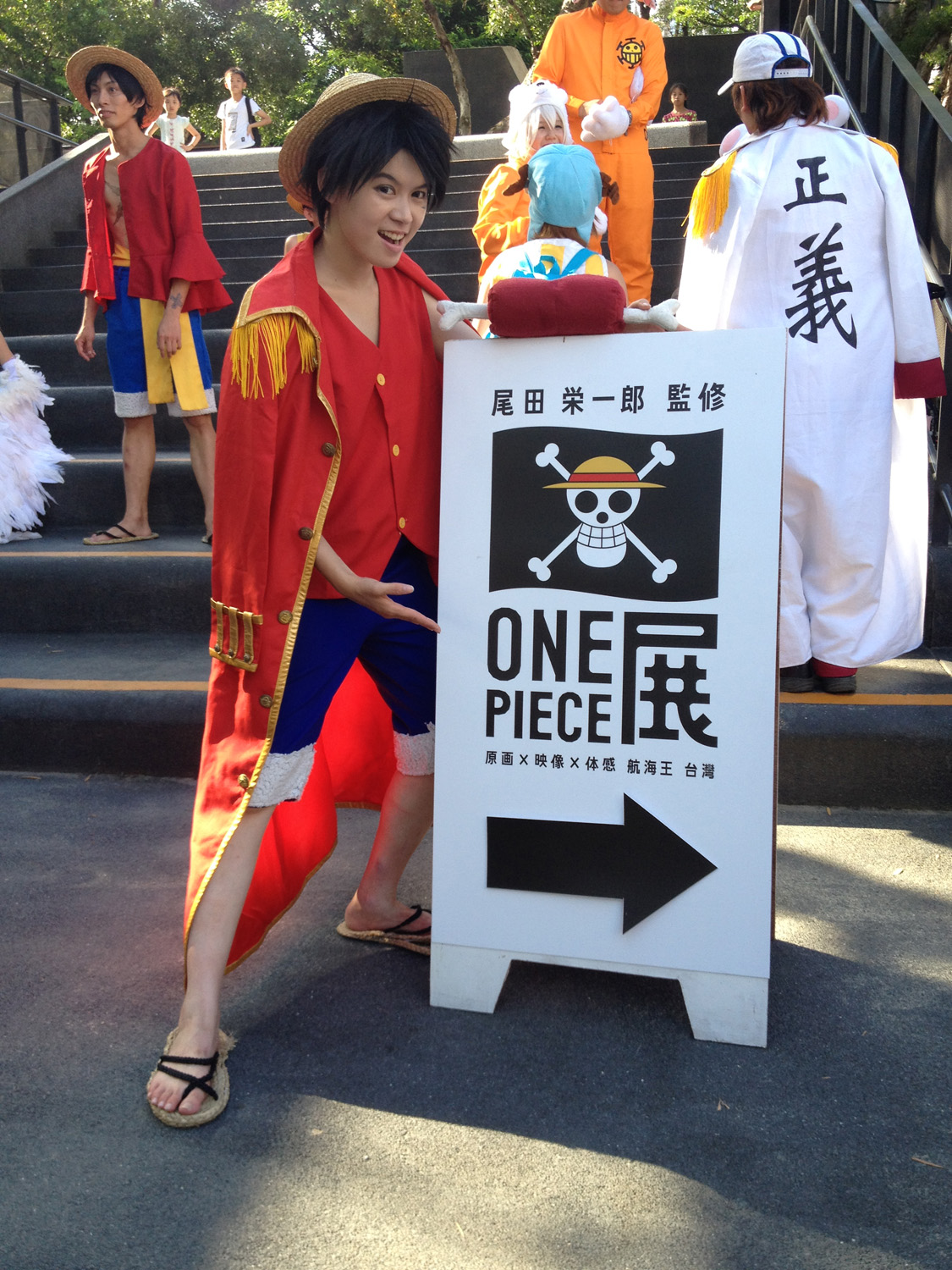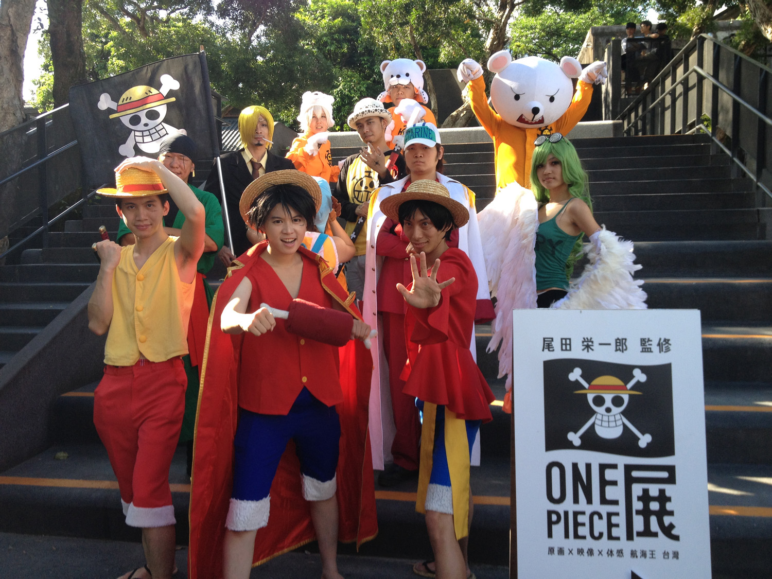 飾演香吉士的發起人 陳立國表示:「開展當日即搶先來看過展覽,深受『夥伴劇場』感動,尤其是魯夫喊著:『我還有夥伴!』的場景讓人印象深刻」因此趁假日發起號召,集結航海王 Coser 同好一起扮裝觀展,昨天北中南共計有 25 位夥伴共襄盛舉。除了魯夫、索隆、香吉士、喬巴等主角外,還有女帝、紅髮傑克、達斯琪等扮相,年紀最小的 Coser 才 2 歲,扮演「多雷斯羅薩王國」裡因吃了惡魔果實而長不大的「砂糖」。