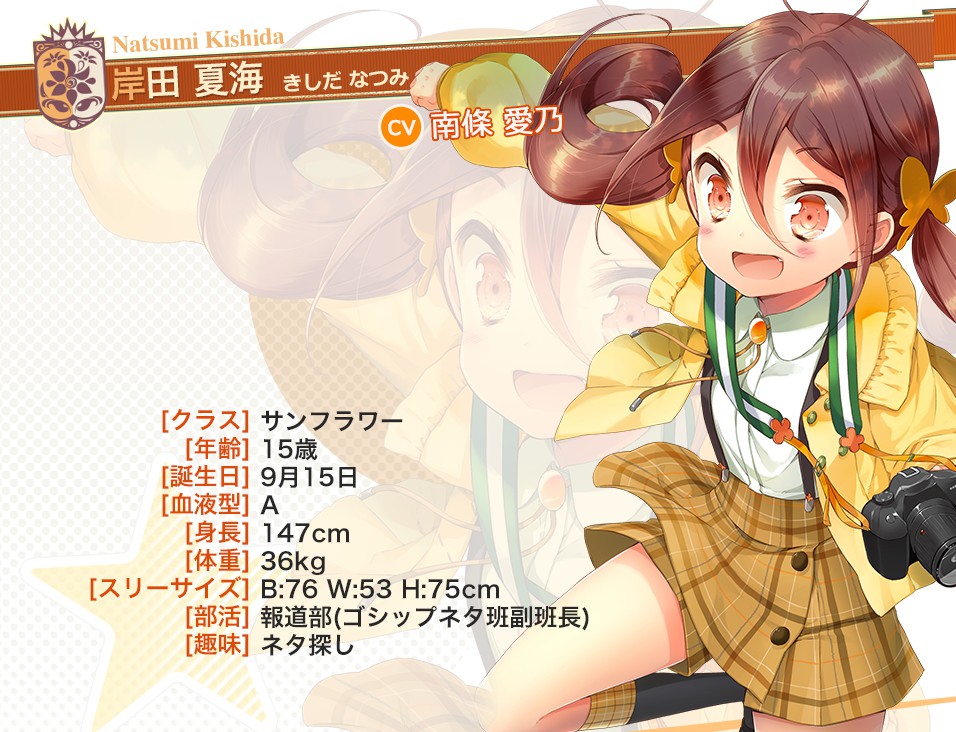 本作的 iOS 版預計 7 月底、Android 則預定今年夏天上架。進行事前登錄的玩家,在遊戲推出後可獲得 R 卡「岸田夏海(配音:南條愛乃)」作為特典。