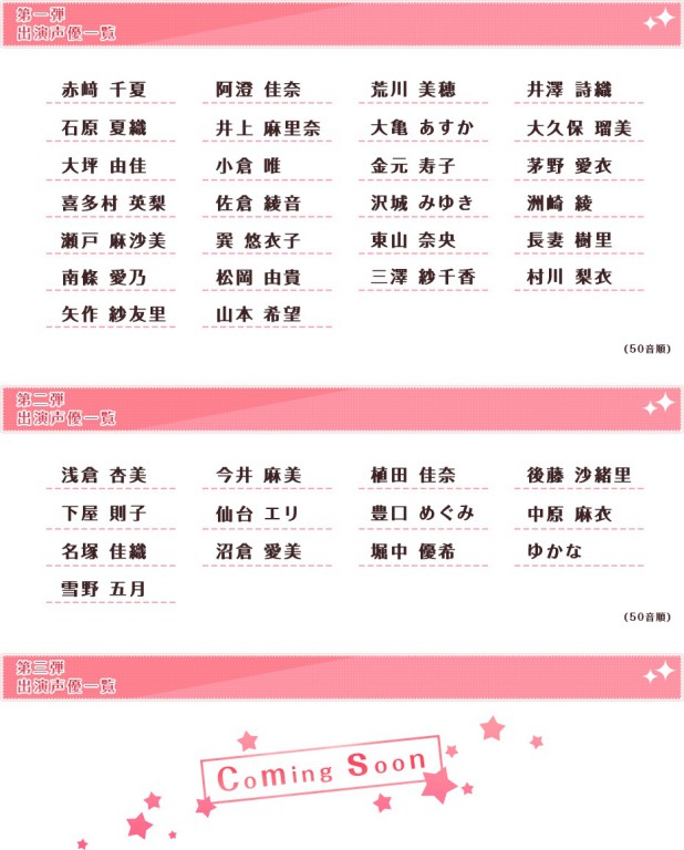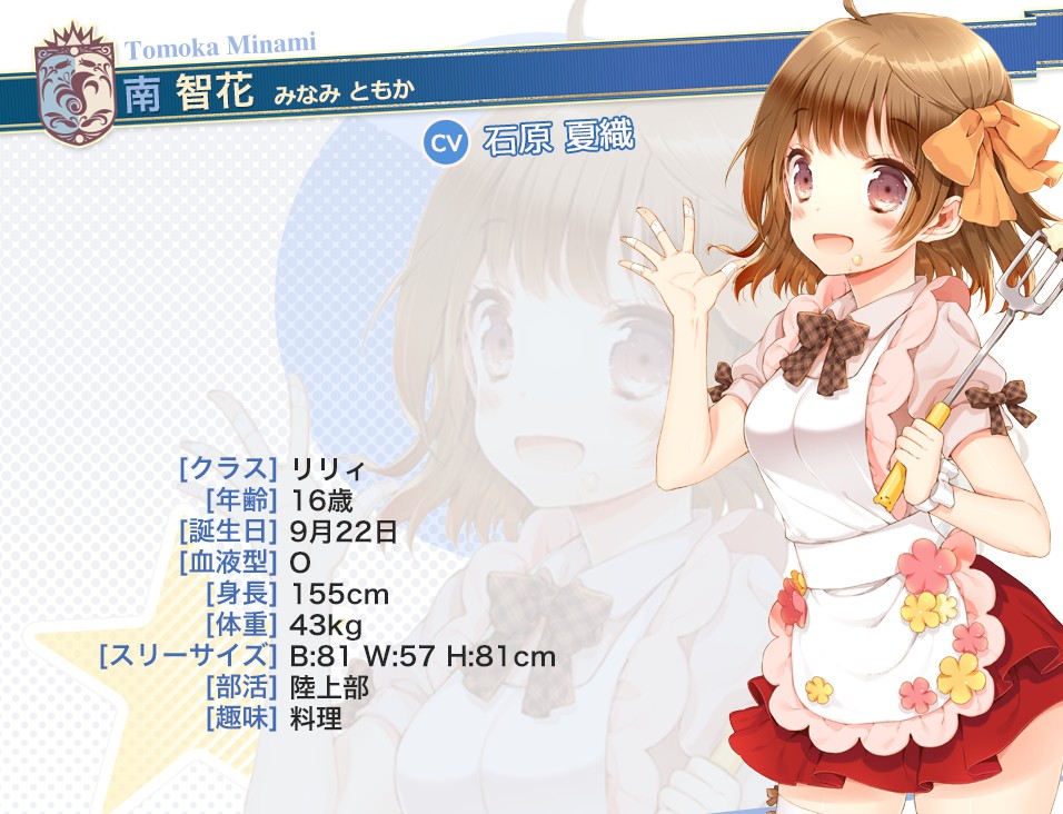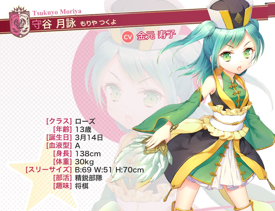 如果折斷她的旗》)擔任主要角色設定外,亦邀請到小倉唯、茅野愛衣、喜多村英梨、沢城美雪、東山奈央、石原夏織、南條愛乃、阿澄佳奈等 53 位聲優獻聲配音,即使是能夠免費獲得的 N 卡也收錄了全語音劇本,預計在第一版推出時即會收錄約 10 小時的語音量。