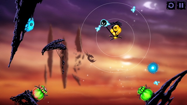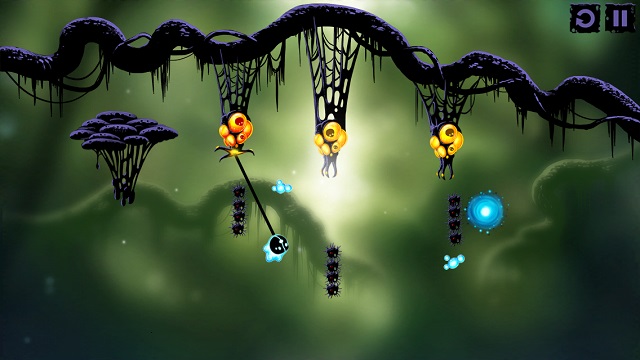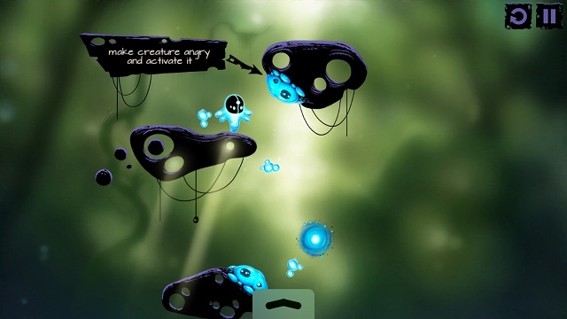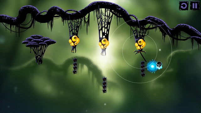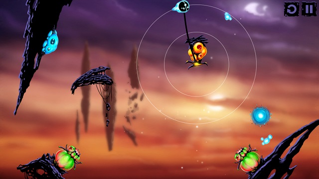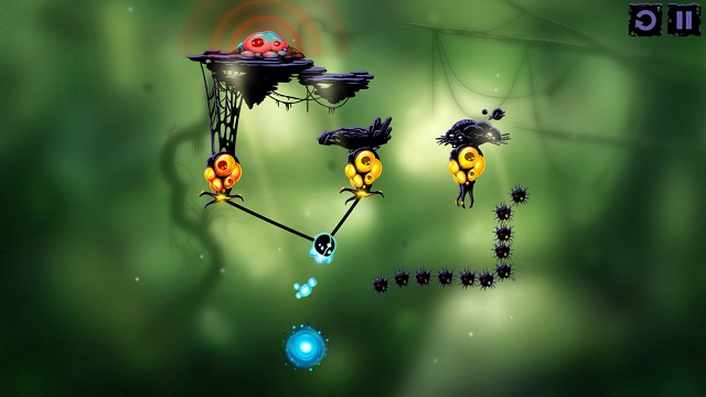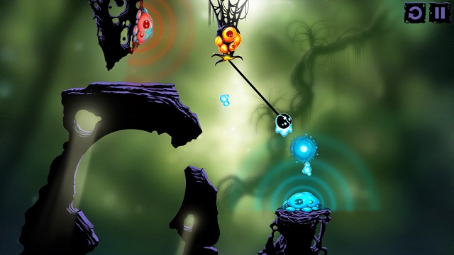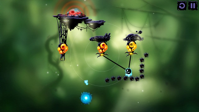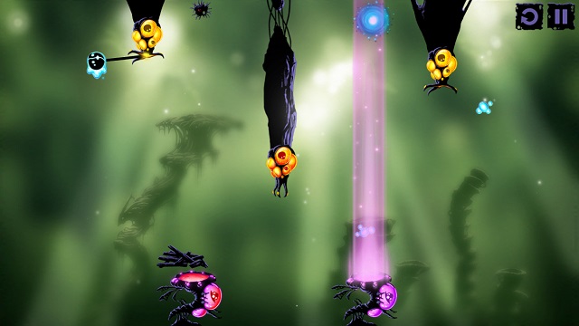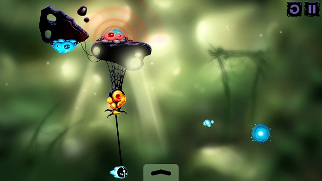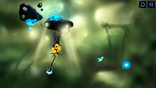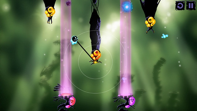 看起來像觸手的生物在操作上一樣是分成點擊與撥動,點擊觸手生物,觸手會伸長接住我們的微生物主角,再次點擊就能放開,由內往外的方向撥動一下觸手,觸手就會發怒並延伸它的長度。在許多關卡裡必須很迅速地組合所有輔助生物的操作步驟,感覺就像馬戲團裡的空中飛人,稍微慢個 0.5 秒微生物就掉進坑裡回不來了。