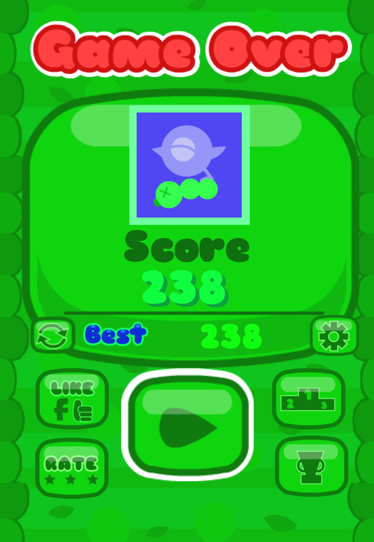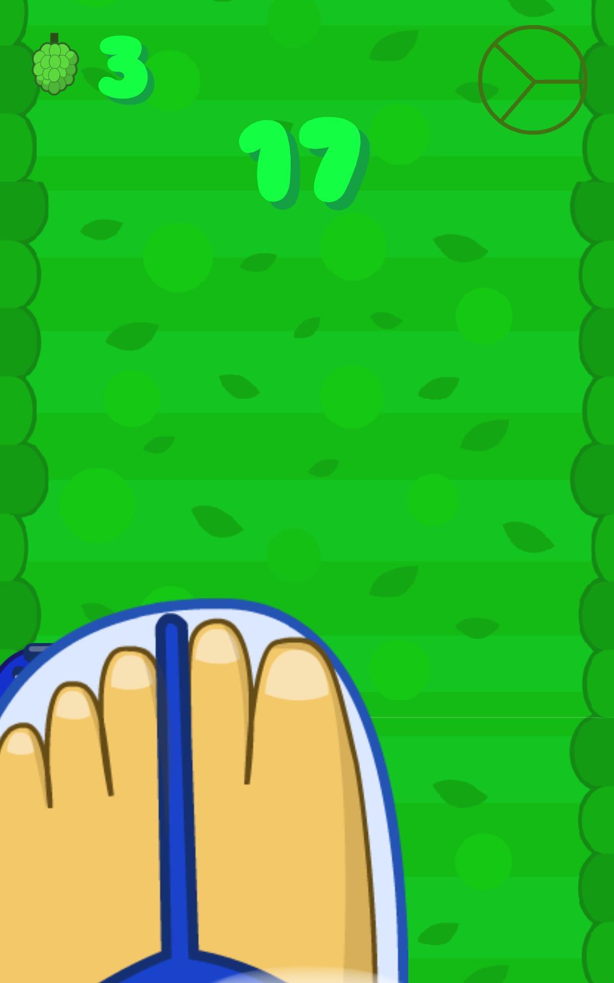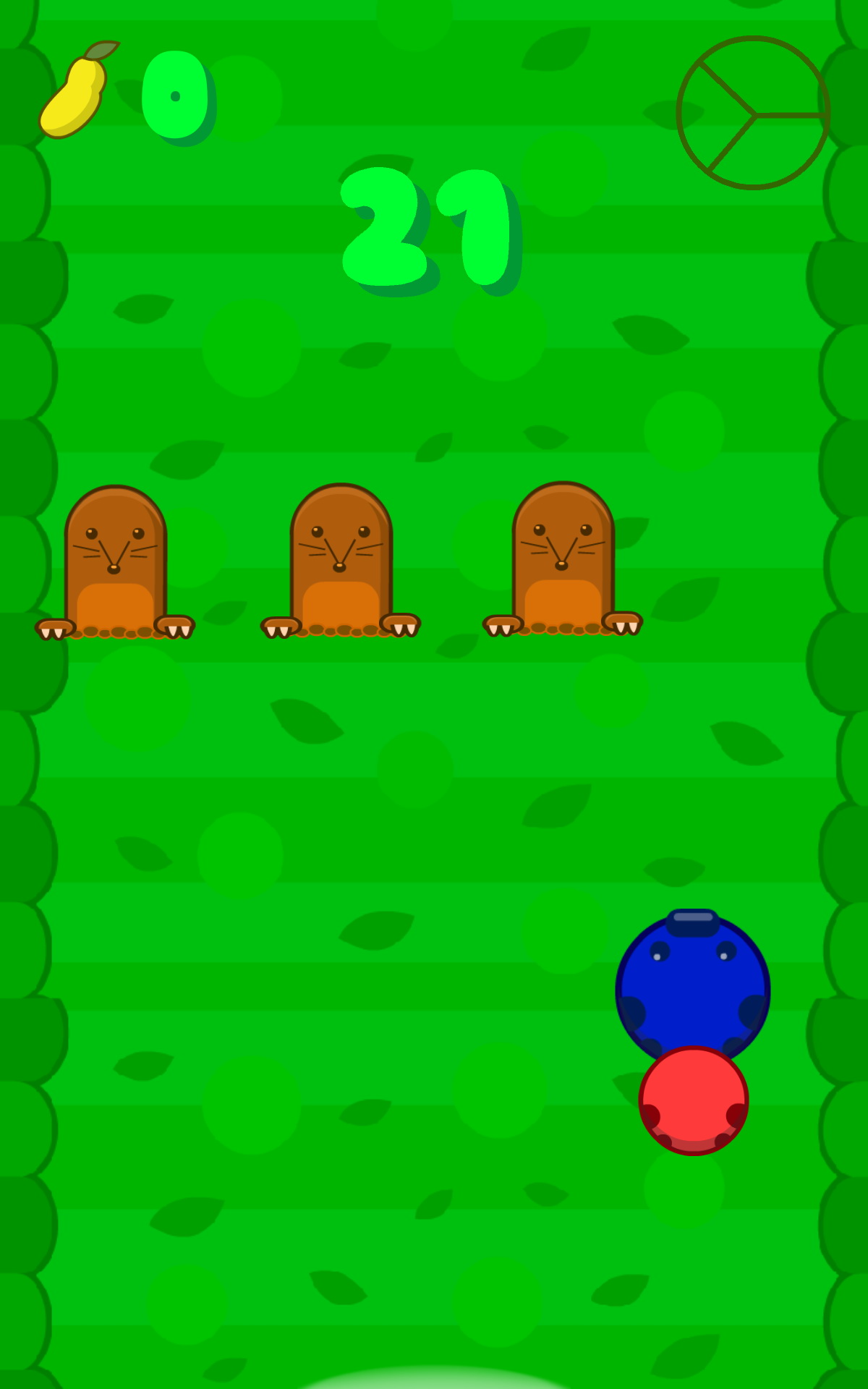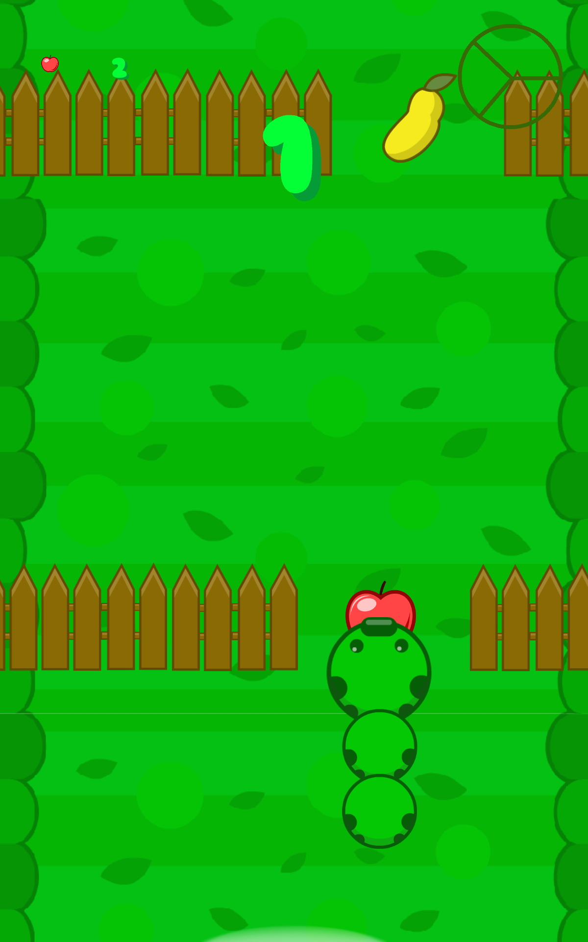 遊戲的操作方式很簡單,只要透過傾斜手機或觸碰就可控制毛毛蟲的左右移動了。由於遊戲的進行速度較快以及必須閃避障礙物的關係,筆者選擇了以觸碰的方式來操作毛毛蟲。毛毛蟲總共有 3 節,也就是說玩家有 3 次失誤的機會,不過每吃到 10 個水果就能夠再長出 1 節。
