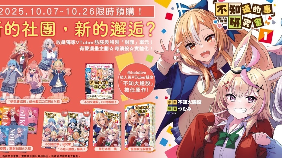 由東立代理發行、hololive VTuber 組合「不知火建設」擔任原作的漫畫,《「不知道的事」研究會》中文版第 1 集首刷限定版,預購已於 10 月 7 日正式在台開跑。 【以下內容為廠商提供資料原文】hololive是由日本... 繼續閱讀