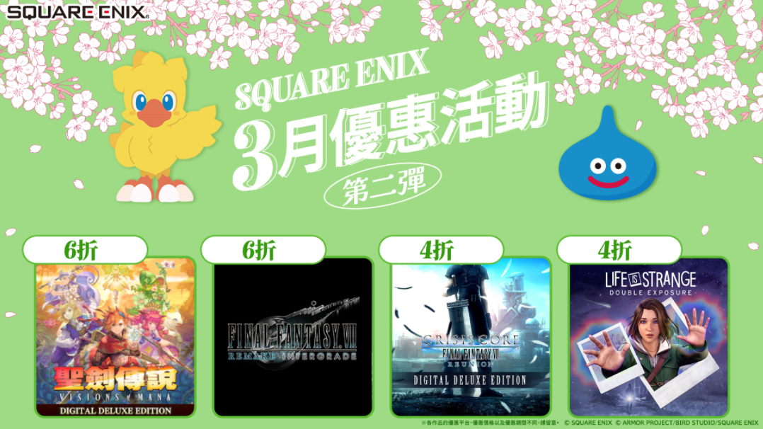 SQUARE ENIX CO., LTD(總公司: 東京都新宿區,代表取締役社長:桐生隆司,以下簡稱 SQUARE ENIX)宣布舉辦「SQUARE ENIX 春季優惠活動 第一彈」。 在本次優惠活動中,不僅《勇者鬥惡龍 1 &a... 繼續閱讀