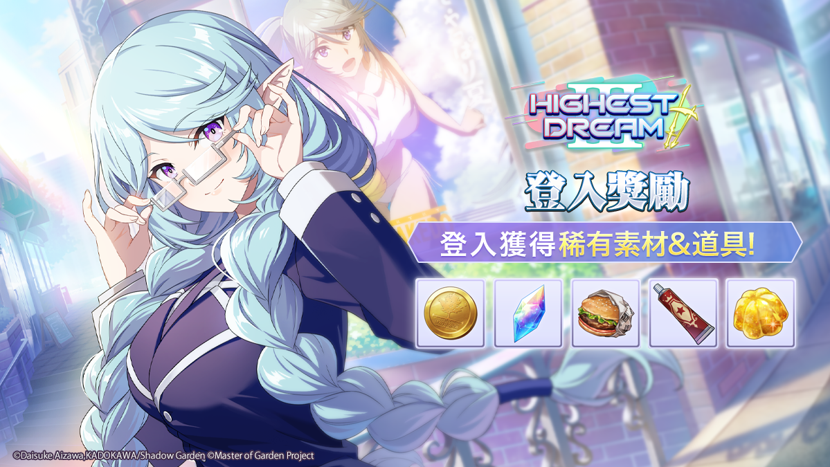由 KADOKAWA 與 Aiming 攜手製作、台灣由大宇資訊旗下星宇互娛所代理,動畫《我想成為影之強者!》延伸 3D 動畫 RPG《我想成為影之強者!Master of Garden》,,官方在今(20)日推出期間限定活動『HIGHES... 繼續閱讀