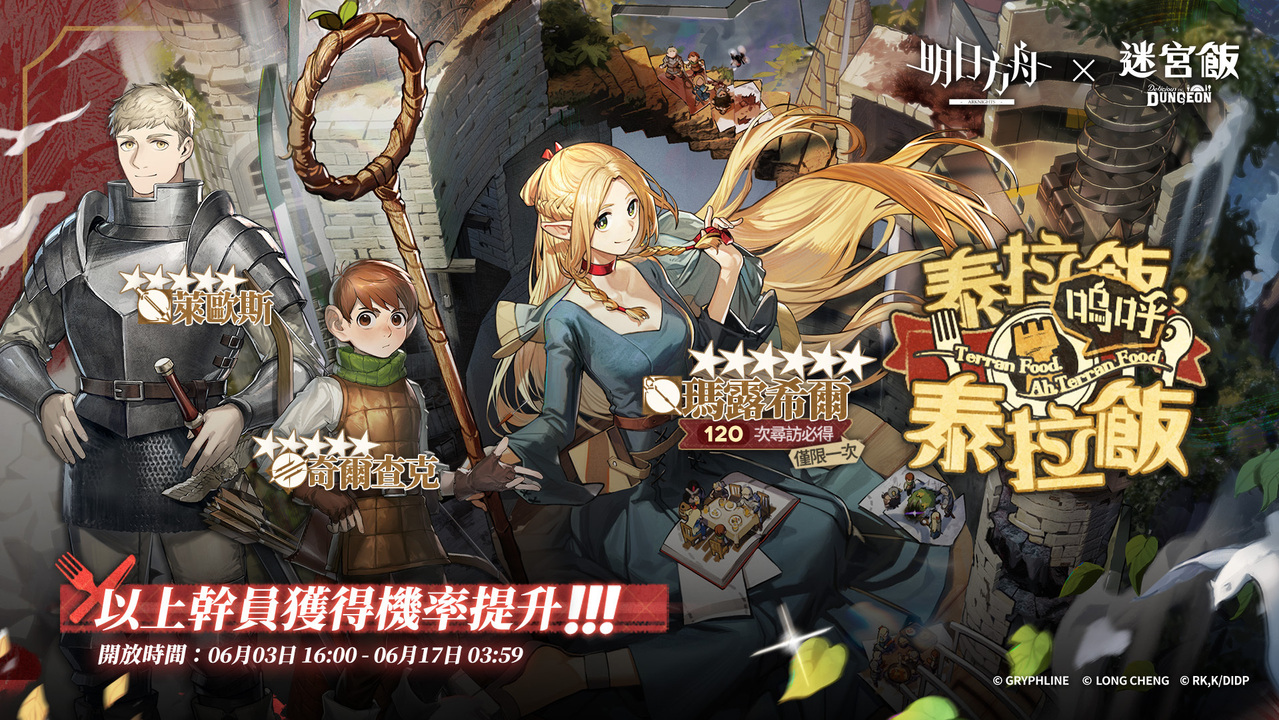 由龍成網路代理營運的新型態戰術攻防 RPG《明日方舟》今(2)日宣布即將與迷宮飯聯動,遊戲內 6 月 3 日至 6 月 24 日期間 SideStory「泰拉飯」 活動開啟,活動期間開放【泰拉飯,嗚呼,泰拉飯】限時尋訪,幹員瑪露希爾、萊歐斯... 繼續閱讀