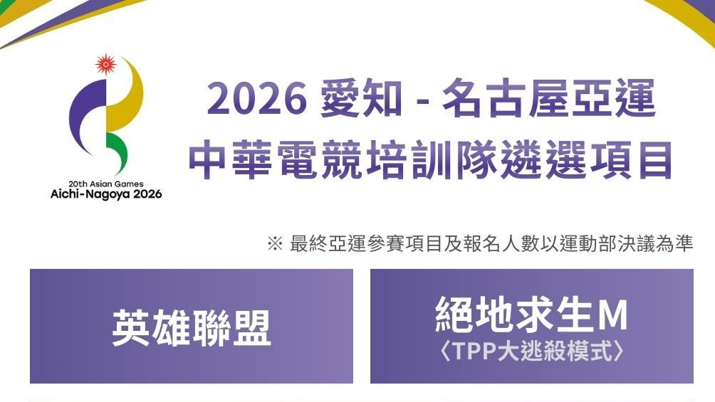中華民國電子競技運動協會(簡稱:中華民國電競協會)近日宣布,將辦理「2026 亞運電競培訓隊遴選」活動,徵召《英雄聯盟》,及選拔《PUBG MOBILE:絕地求生 M》、《快打旋風 6》等遊戲的選手,各項目預計於明年 1~2 月舉辦選拔賽。... 繼續閱讀