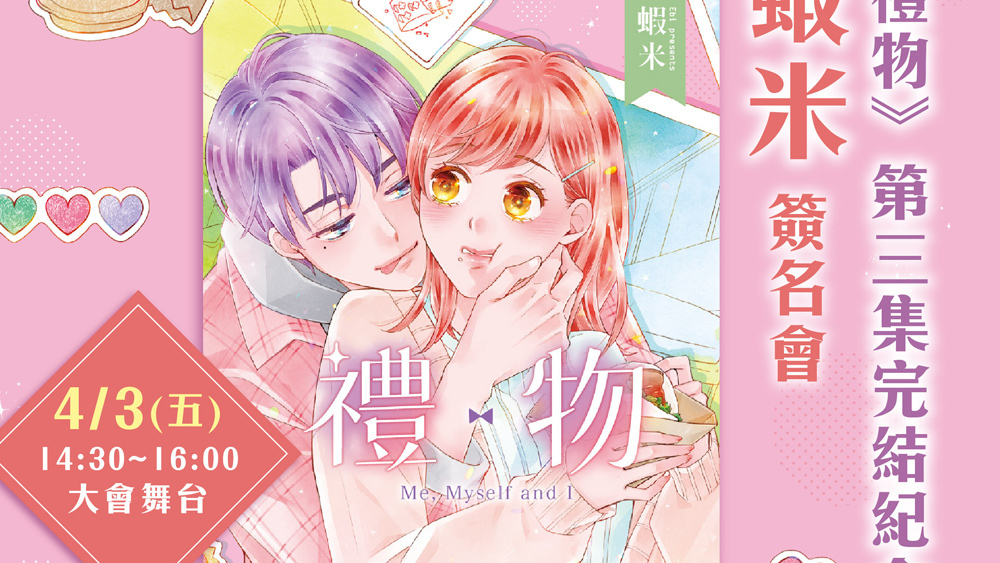 長鴻出版社宣布,將於 2026 台中國際動漫節期間邀請台中在地原創少女漫畫家蝦米老師舉辦《禮物》第三集完結紀念簽名會,本次簽名資格組限量 100 組將在 3/14(六)於長鴻官網販售。 溫馨樸實的大齡女子奮鬥故事,終於... 繼續閱讀