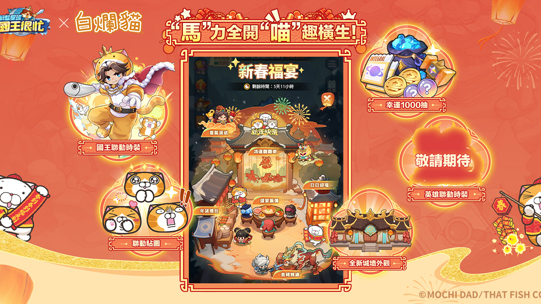 《蔚藍星球:國王很忙》今(3)日正式宣布,將於 2 月 10 日推出與人氣 IP「白爛貓」的新春聯動活動。官方表示,本次聯動版本將帶來限定造型「白爛貓」、「擺爛」貼圖及專屬聯動玩法,春節期間就讓白爛貓家族陪玩家一起白爛開鬧、輕鬆暢玩。&nb... 繼續閱讀