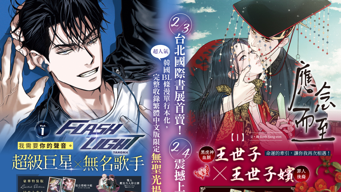 2026 台北國際書展將於 2/3(三)~2/8(日)在台北世界貿易中心展覽一館展出。台灣角川今日公開將於會場首賣的兩部韓國人氣 BL 作品,由 YANGMA 創作的《FLASHLIGHT(1)》,故事描述飽受失眠困擾的超級巨星艾倫,意外遇... 繼續閱讀