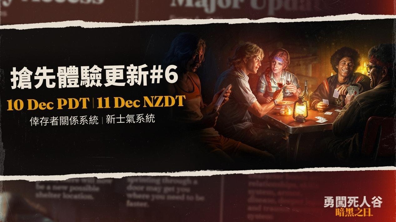 由 PikPok 開發的生存類新作《勇闖死人谷:暗黑之日(Into the Dead: Our Darkest Days)》迎來搶先體驗第六次更新,本次聚焦於「人心與關係」的全面強化:動態士氣系統、角色特質變化、關係系統、可選擇的隨機事件等... 繼續閱讀