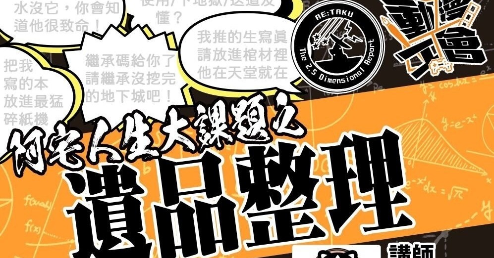 ——給還在推坑路上的你,一份關於人生的思考。不是迷因,也不是推活,這次我們聊的是——當我們離開之後,留下的那些東西,要怎麼辦? 主講人介紹|大熊(動漫主持人/遺品整理師)十多年來持續參與各類次文化現場,熱愛記錄、收藏與思考。從親身經驗出發,... 繼續閱讀