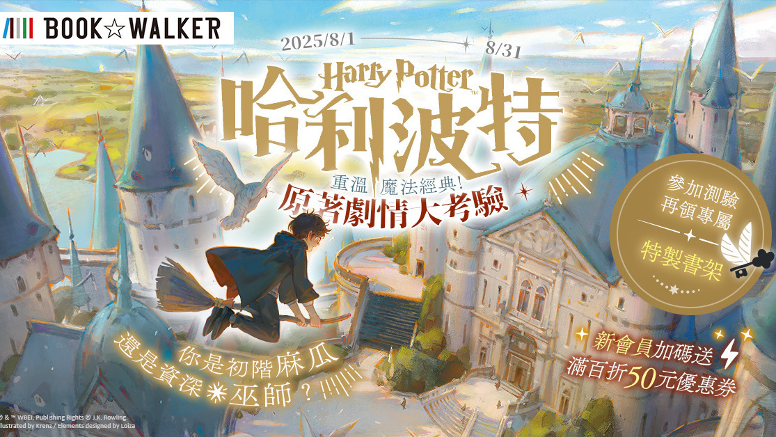 電子書平台 BOOK✩WALKER 於 8 月 1 日至 8 月 31 日,推出「重溫魔法經典!《哈利波特》原著劇情大考驗」特別企劃,活動期間答對測驗,即可獲得獨家限定書架。同時為慶祝《哈利波特》電子版上架,單書 88 折,套書優惠價 2,... 繼續閱讀