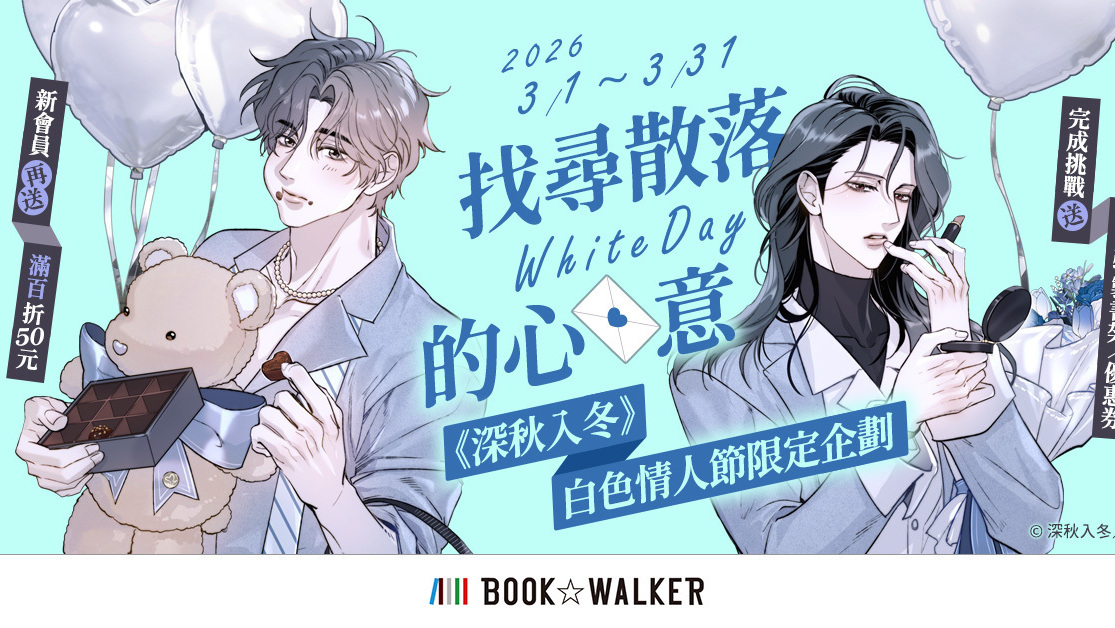 隨著白色情人節即將到來,BOOK☆WALKER 今年特別邀請人氣BL漫畫家桂跨界合作,以其代表作《深秋入冬》中的角色「秋」與「冬」為主題,推出限定活動,透過甜蜜的趣味遊戲,為讀者帶來屬於戀人之間的甜蜜節日氛圍。 活動期... 繼續閱讀