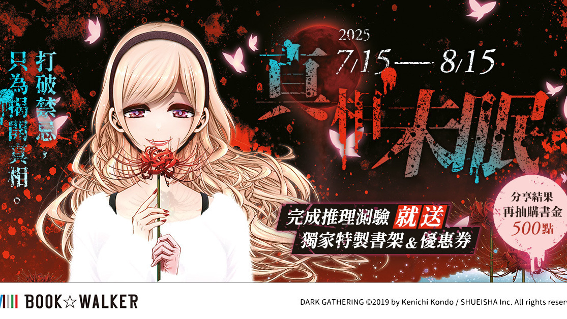 電子書平台 BOOK✩WALKER 於 7 月 15 日至 8 月 15 日,推出「真相未眠——打破禁忌,只為揭開真相」主題企劃,精選多部懸疑與推理題材作品,邀請讀者一同踏入層層謎團的閱讀旅程。本次活動還特別設計了結... 繼續閱讀
