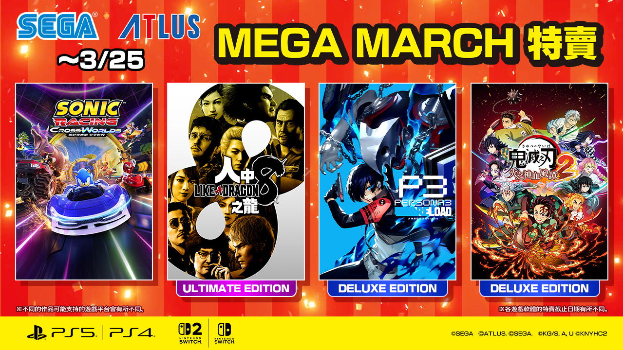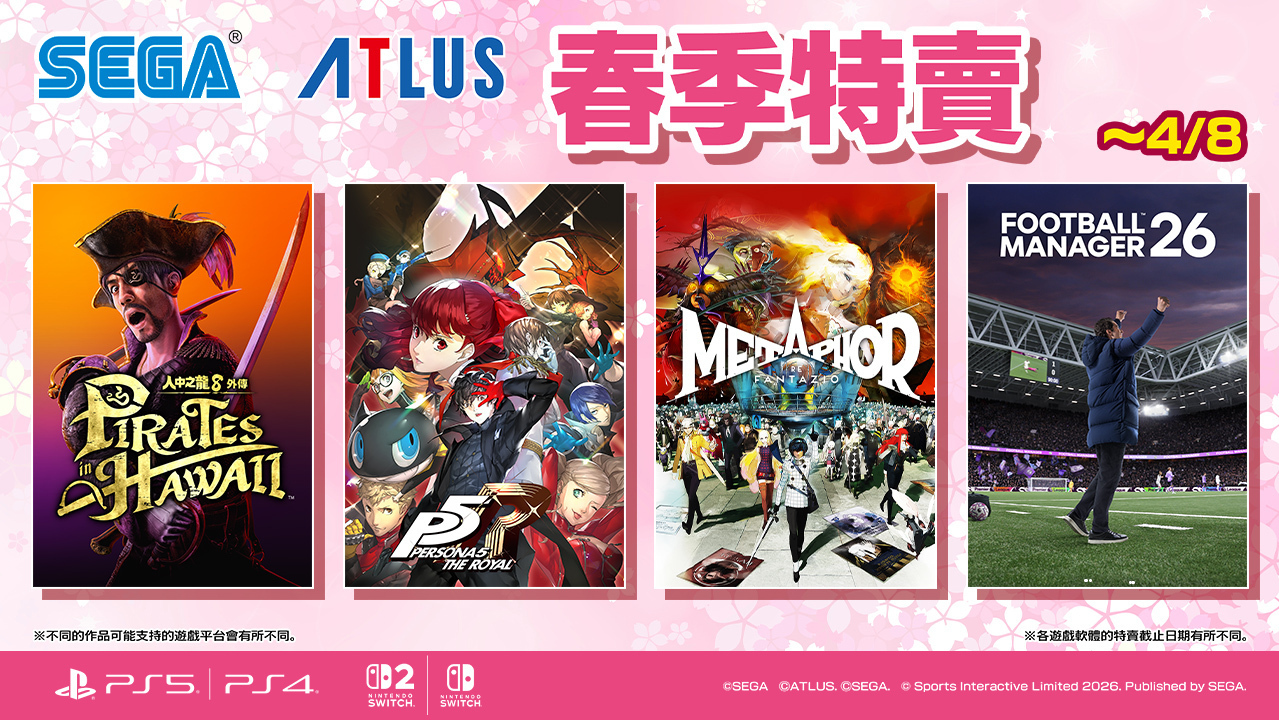 【以下內容為廠商提供資料原文】 世雅股份有限公司現正舉辦「SEGA 馬年特賣」活動。針對 PlayStation Store 及 Nintendo eShop 所販售的部分 PlayStation 5/PlayStation 4/... 繼續閱讀